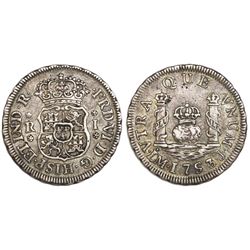 1064 - Lima, Peru, pillar 8 reales, Charles III, 1764JM, dot over left mintmark only (rare).Sedwick & Associates, LLC