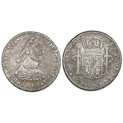 Lima, Peru, bust 1 real, Ferdinand VII ("imaginary" bust), 1810JP. ,KM-109; CT-1128. 3.51 grams. Deeply toned XF with well-detailed bust, ...