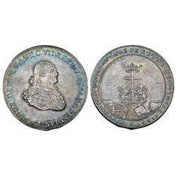 Bogota, Colombia (for Maracaibo, Venezuela), silver uniface 4R-sized proclamation medal die trial, Charles IV, 1789, very rare. Herrera-157; Medina-18
