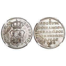 Honda, Colombia, silver 4R-sized proclamation medal, Ferdinand VII, 1808, rare, NGC AU 53, finest and only example in NGC census. Restrepo-10 (p. 129)