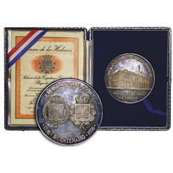 Havana, Cuba, large silver medal, Palacio de los Capitanes Generales 200th anniversary, 1976, with original box. 57 mm; 65.98 grams. Obverse with hig