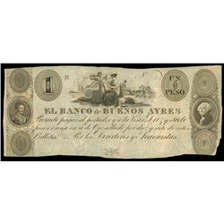 1280 - Buenos Aires, Argentina, Banco de Buenos Ayres, 1 peso remainder, no date (1827-29), plate positionSedwick & Associates, LLC