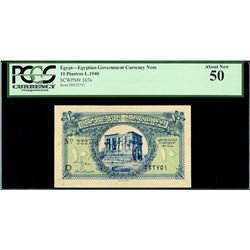 1309 - Cairo, Egypt, Egyptian Government, 10 piastres, 1940, serial D222751, PCGS About New 50.Sedwick & Associates, LLC