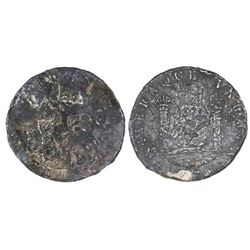 Mexico City, Mexico, cob 8 reales, (17)14(J), new style. S-M22; KM-47; Cal-1401. 26.55 grams. Solid and uncorroded but with patches of encrustation, f