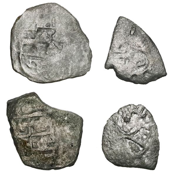 Lot of four Mexico City, Mexico, cob 1R, Philip V, assayers not visible, some "Tricentennial Hoard." KM-30. 6.49 grams total. Decent group...