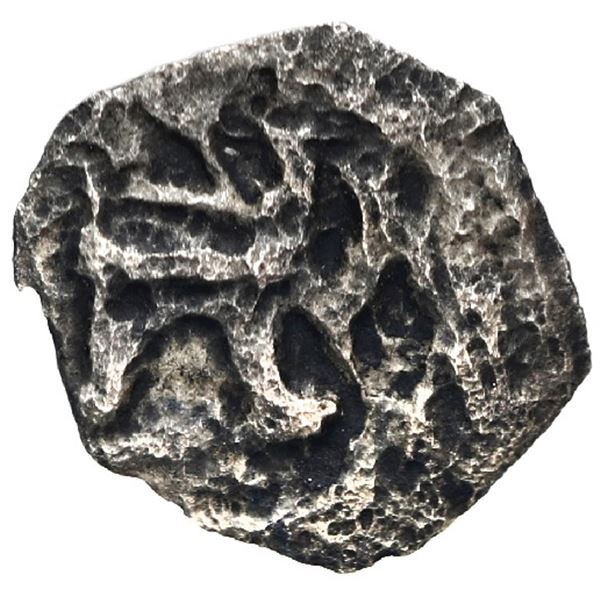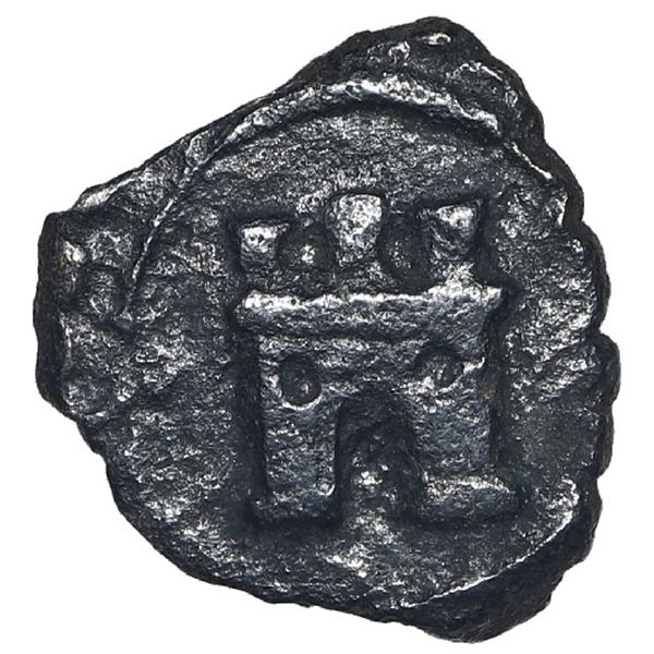 Bogota, Colombia, cob mitad of a 1/4 real (?), Philip V, no assayer (1724-9), very rare. Restrepo-unl; KM-unl; Cal-unl. 0.44 gram. The concept of an o