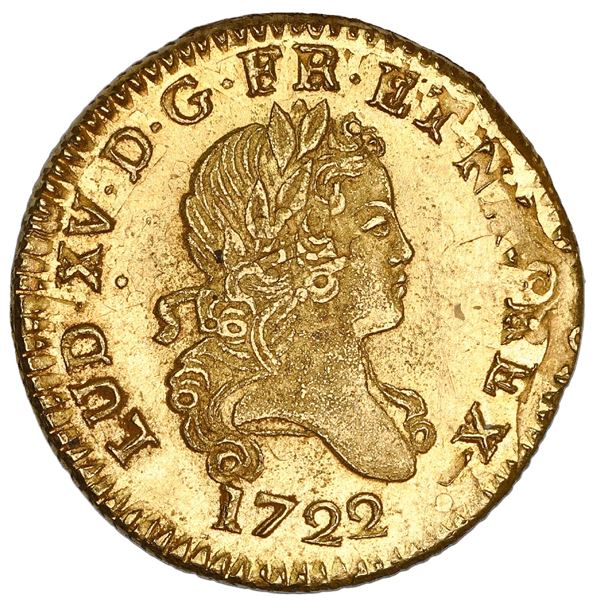 France (Lille mint), gold louis d'or aux deux L, Louis XV, 1722-W, rare, struck over a double louis 1024 - France (Lille mint), gold louis d'or aux deux L, Louis XV, 1722-W, rare, struck over a double louis