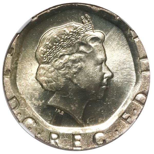 Great Britain, 20 pence, Elizabeth, 1998, NGC Mint Error MS 65, struck on foreign planchet.1044 - Great Britain, 20 pence, Elizabeth, 1998, NGC Mint Error MS 65, struck on foreign planchet.
