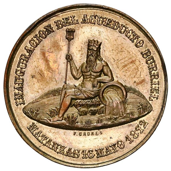 Cuba (under Spain), brass medal, Amadeo I, 1872, inauguration of the Burriel aqueduct at Matanzas, by Crones. 38.73 grams; 40mm. Obverse with Neptune