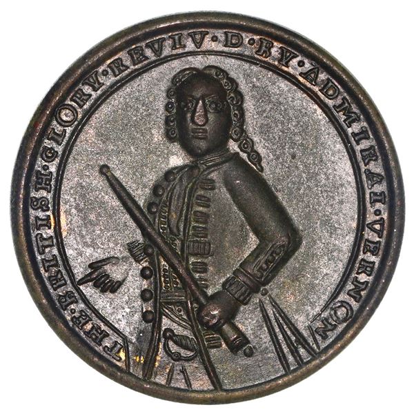 1383 - Great Britain, copper alloy Admiral Vernon medal, Vernon with cannon and anchor / Cartagena, 1741, eSedwick & Associates, LLC