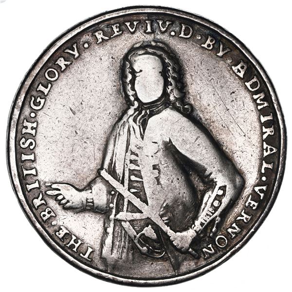 1350 - Great Britain, medium-sized silver Admiral Vernon medal, Vernon / Porto Bello, 1739, rare, ex-Adams.Sedwick & Associates, LLC