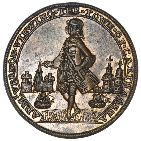 Great Britain, copper alloy Admiral Vernon medal, Vernon with city and ships / Cartagena, 1741, ex-Adams (Plate). AC-CAv5F. 37 mm, 11.24 grams. Nice A