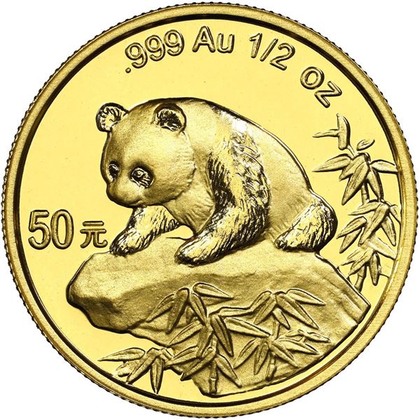 703 - China (People's Republic), gold 50 yuan (1/2 oz) Panda, 1999, large date plain 1 (Shenyang mint), NGSedwick & Associates, LLC