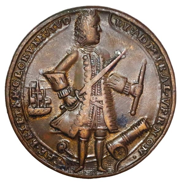 1580 - Great Britain, copper alloy Admiral Vernon medal, 1739, Vernon and Fort Chagre / Porto Bello, ex-FerSedwick & Associates, LLC