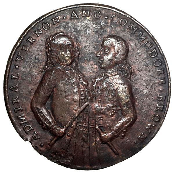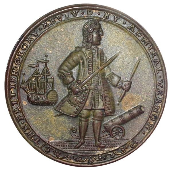 1590 - Great Britain, copper alloy Admiral Vernon medal, 1741, Vernon and Lezo and Brown / Cartagena, uniquSedwick & Associates, LLC