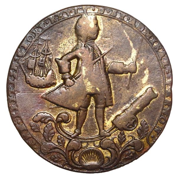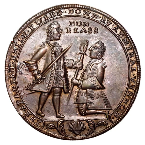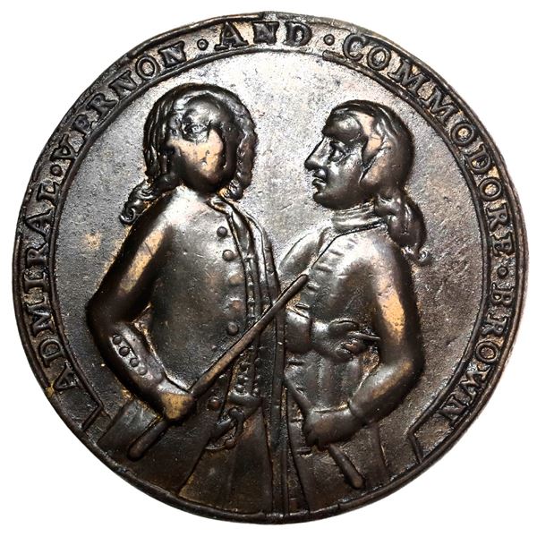 1560 - Great Britain, copper alloy Admiral Vernon medal, 1739, Vernon and Brown / Porto Bello, unique, ex-ASedwick & Associates, LLC