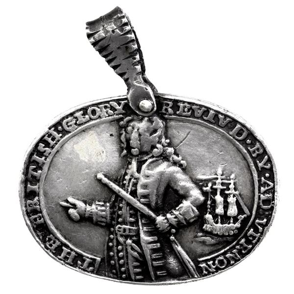 1559 - Great Britain, oval silver Admiral Vernon medal, 1739, Vernon and ship / Porto Bello, made into a peSedwick & Associates, LLC