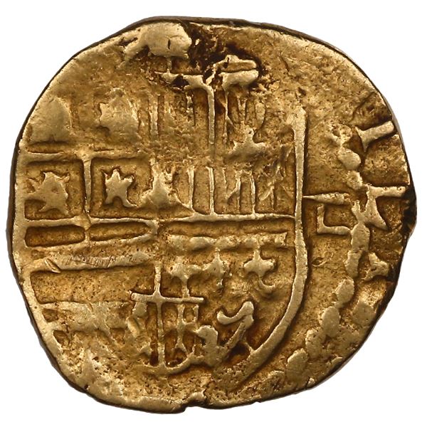 SPAIN, Seville, gold cob 1 escudo, Philip III, assayer not visible. Cal-Type 186; KM-48.1; Fr-196. 3.33 grams. XF with strong partial shield and cross