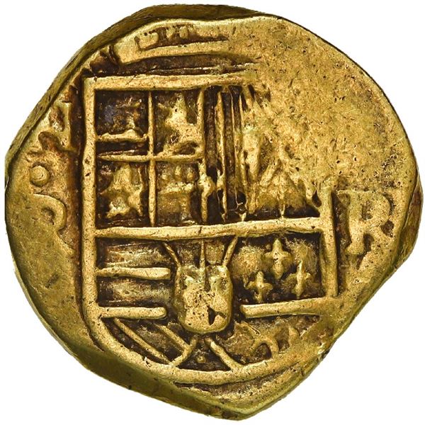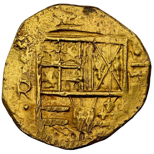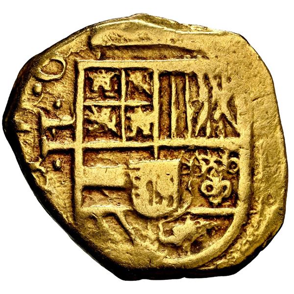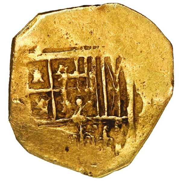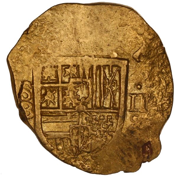 1598 - COLOMBIA, Bogotá, gold cob 2 escudos, Philip IV, assayer R below denomination II to right (mid-1600sSedwick & Associates, LLC