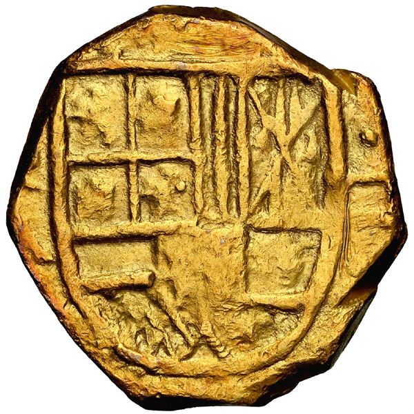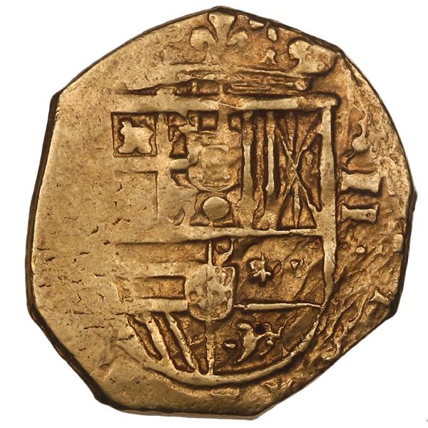 SPAIN, Seville, gold cob 2 escudos, Philip III, assayer not visible. Cal-Type 197; KM-20; Fr-189. 6.70 grams. Nice, bold AU with full shield and cross