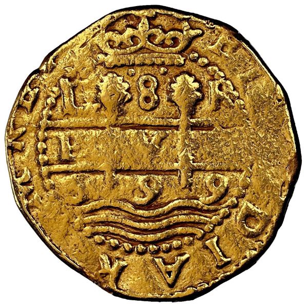 1583 - SPAIN, Seville, gold cob 2 escudos, Philip III, assayer B.Sedwick & Associates, LLC