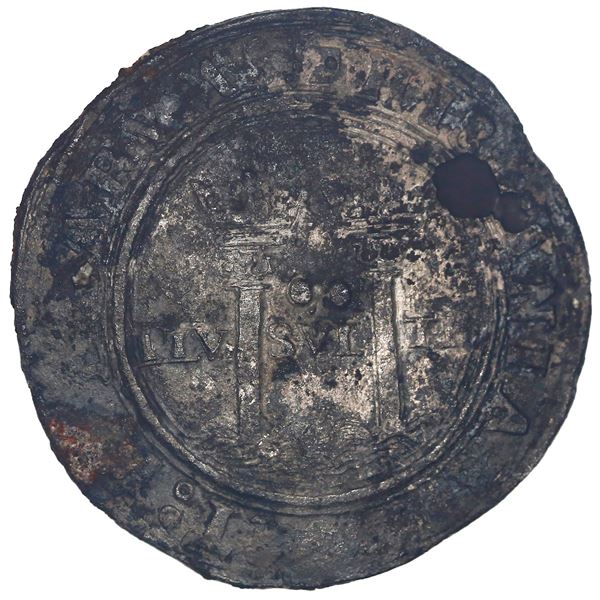 BOLIVIA, Potosí, cob 8 reales, Philip III, assayer not visible, Grade 3. KM-10. 20.46 grams. Corroded with very little shield detail but most o...