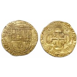 60 - Seville, Spain, cob 2 escudos, Philip II, assayer Gothic D above and below mintmark S to left.Sedwick & Associates, LLC