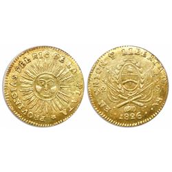 81 - Argentina (River Plate Provinces), La Rioja mint, 2 escudos, 1826, coin alignment.Sedwick & Associates, LLC