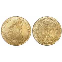 Potosi, Bolivia, bust 8 escudos, Charles IV, 1803PJ, encapsulated NGC AU 55. CT-110; KM-81; Fr-14. Lustrous and well-struck, the obverse with light s