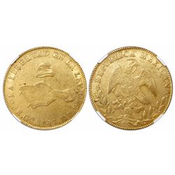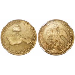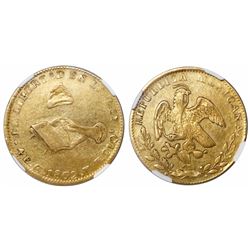 Guanajuato, Mexico, 4 escudos, 1862YE, encapsulated NGC AU 53, finest and only specimen in NGC census. KM-381.4. Light toning, decent luster, some ha