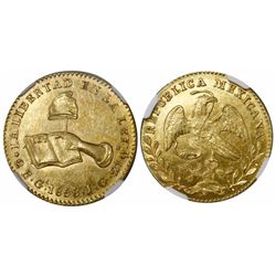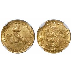 Guadalajara, Mexico, 2 escudos, 1858JG, encapsulated NGC MS 62. KM-380.3. Bold strike, choice luster, faint hairlines in obverse fields only. NGC #44