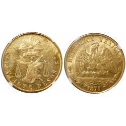 171 - Oaxaca, Mexico, 10 pesos, 1871/68E (overdate not on slab), encapsulated NGC MS 61.Sedwick & Associates, LLC
