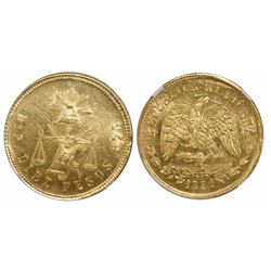 Oaxaca, Mexico, 10 pesos, 1871/68E (overdate not on slab), encapsulated NGC MS 61. KM-413.8, Fr-136. Choice strike and nice luster but with very fain