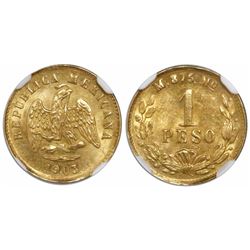Mexico City, Mexico, 1 peso, 1903M, small date, encapsulated NGC MS 64. KM-410.5. Bold strike with full details but rims partially crude, good luster