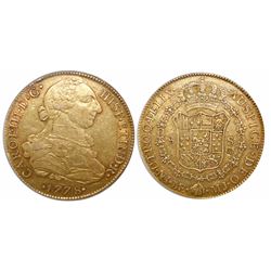 Mexico City, Mexico, bust 8 escudos, Charles III, 1778FF, encapsulated NGC MS 61, finest known in NGC census. CT-96; KM-156.2. Choice strike and lust