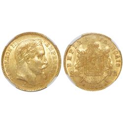 France (Strasbourg mint), 20 francs, 1864-BB, Napoleon III, NGC MS 61.167 - France (Strasbourg mint), 20 francs, 1864-BB, Napoleon III, NGC MS 61.