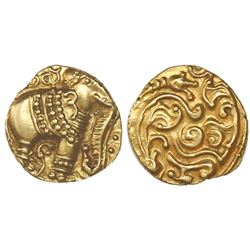 India (Gangas of Talakad), "elephant" pagoda, 1100-1327 AD, elephant right, NGC MS 62. Fr-488. 3.90 grams. Very bold strike (high relief) ...
