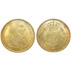 Mexico City, Mexico, bust 8 escudos, Charles III, 1786FM, NGC MS 61, tied for finest known in NGC census. CT-110; KM-156.2a. Bold strike with lovely