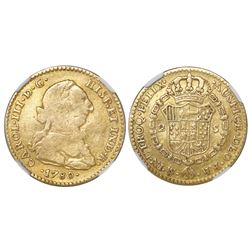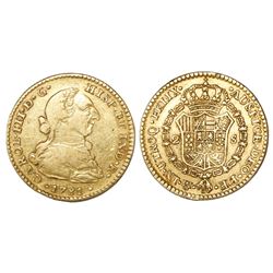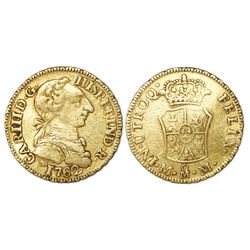 Mexico City, Mexico, bust 2 escudos, Charles III, 1781FF/FM. CT-unl (Type 59); KM-130.2. 6.69 grams. Problem-free VF/XF with traces of toning around d