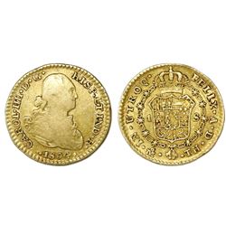 Mexico City, Mexico, bust 1 escudo, Charles IV, 1804TH. CT-516; KM-120. 3.33 grams. VF/XF with typically weak bust, dark toning around details, traces