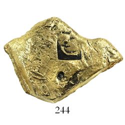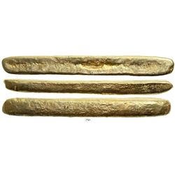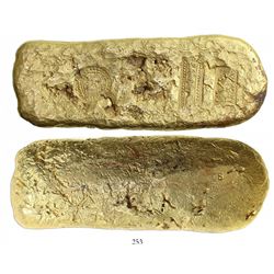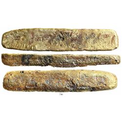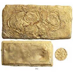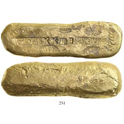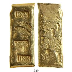 Large, rectangular, Peruvian gold bar, 2148 grams, marked with fineness XX-dot (20.25K) and castle-and-stars tax stamp, from the 1715 Fleet. 5-1/2&...