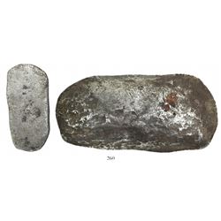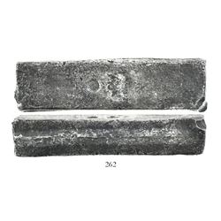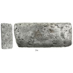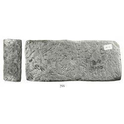 Silver "tumbaga" bar #M-16, 5 lb 6-1/4 oz av., marked with serial RC, assayer B~Vo and fineness (IU)9CCCC L x x (1970/2400 = 82% fine), fr...