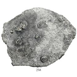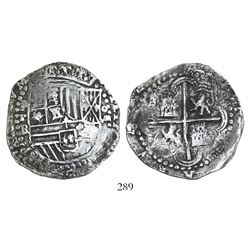 Potosi, Bolivia, cob 8 reales, Philip II, assayer C below erasure, very rare. S-P5; KM-5.1; CT-136 (under La Plata). 25.19 grams. Mostly solid specime