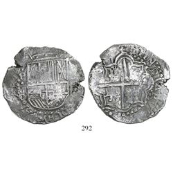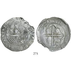 275 - Potosi, Bolivia, cob 8 reales, Philip II, assayer C below erasure, very rare.Sedwick & Associates, LLC