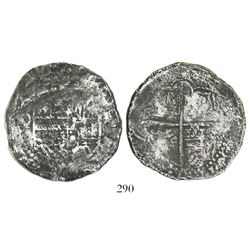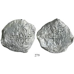 Potosi, Bolivia, cob 8 reales, (1)617(M), Grade 2. S-P19; KM-10; CT-129. 26.57 grams. Bold full cross with clear date, full but off-center shield, par