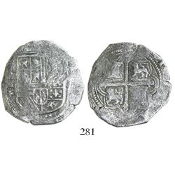 282 - Lima, Peru, cob 2 reales, Philip II, assayer R (Rincon), motto PL-VSV-LT above two-dot denomination,Sedwick & Associates, LLC