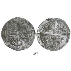 283 - Lima, Peru, cob 4 reales, Philip II, assayer Diego de la Torre, P-4 to left, *-oD to right, Grade 2.Sedwick & Associates, LLC