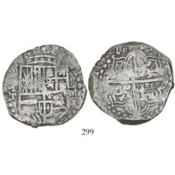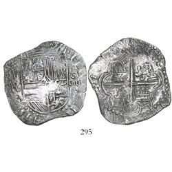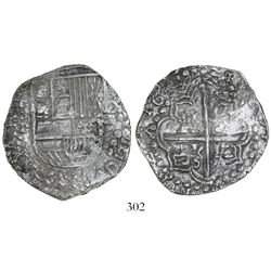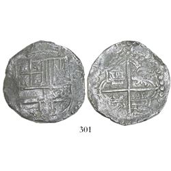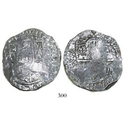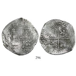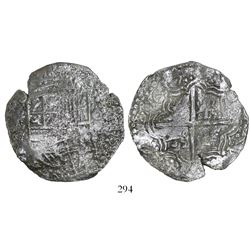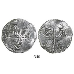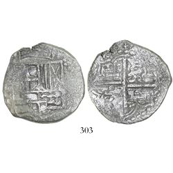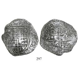 Potosi, Bolivia, cob 8 reales, (162)0T, Grade 2. S-P21; KM-10; CT-137. 24.07 grams. Full shield and cross (the latter slightly doubled), full 0 of dat