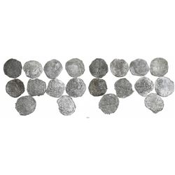 Lot of 10 Potosi, Bolivia, cob 8 reales, Philip II and/or III, various assayers (where visible), all Grade 2. Generally lightly corroded (some bette