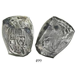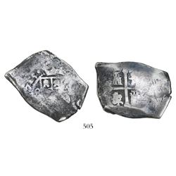 Mexico City, Mexico, cob 8 reales, "greenie" (encrusted, as found), probably Philip V, assayer not visible. 27.00 grams. Solid, squarish ...